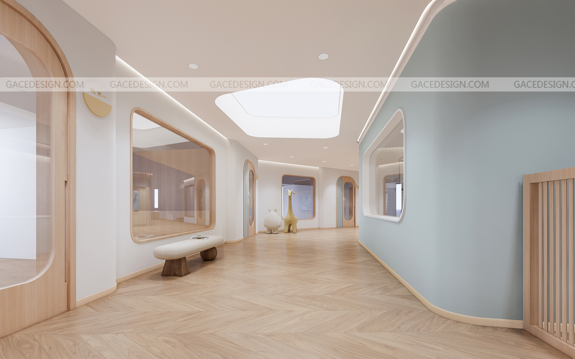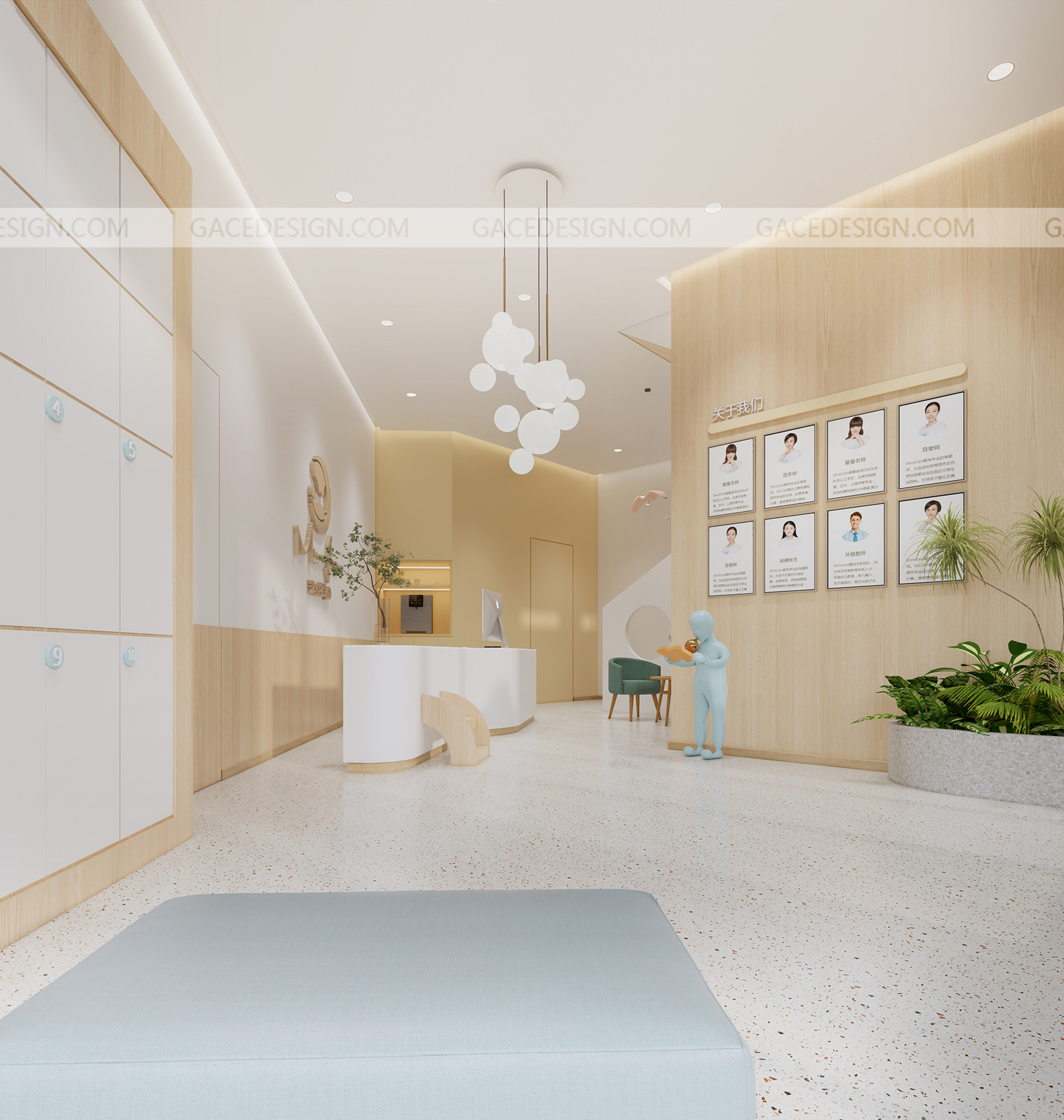 設計思路:通過有溫度感的設計,干凈的空間,但又能夠讓使用者有舒服的體驗,設計不是堆砌造型,應該讓使用者在里面待的狀態可以很放心,溫暖。通過空間里面的大小細節,材質,燈光,人與人之間的眼神和交流而感到幸福。通過具備挑戰性的區域讓孩子們有各種情感上的變化。而且我們在室內設計了一個微縮園林,希望孩子可以與自然環境緊密相連。